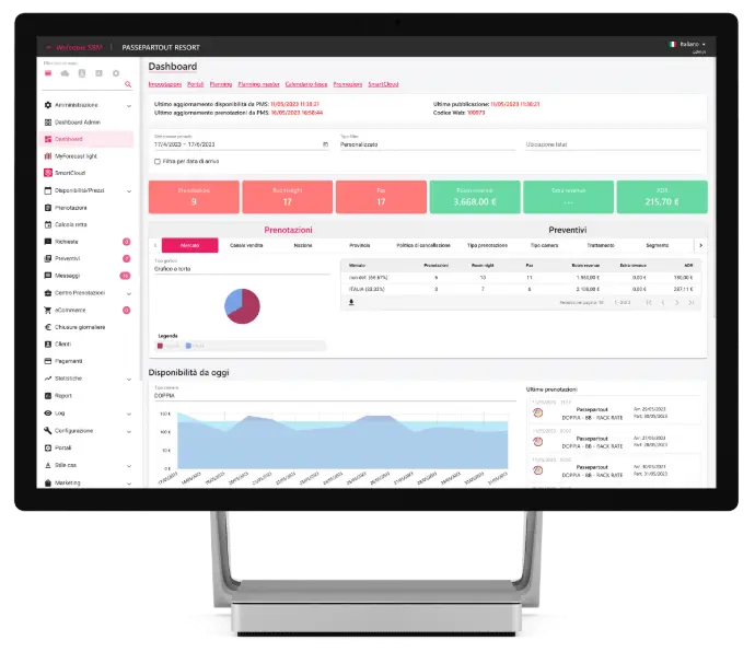 Il Channel Manager di Welcome permette di pubblicare in pochi click disponibilità, strategie e prezzi sui principali portali di prenotazione online grazie alla sincronizzazione automatica con il gestionale. È possibile impostare condizioni di prenotazione ed eventuali restrizioni direttamente nel programma, dove vengono riportate anche le prenotazioni in entrata, garantendo un notevole risparmio in termini di tempo ed eliminando errori dovuti alla trascrizione di dati e informazioni.